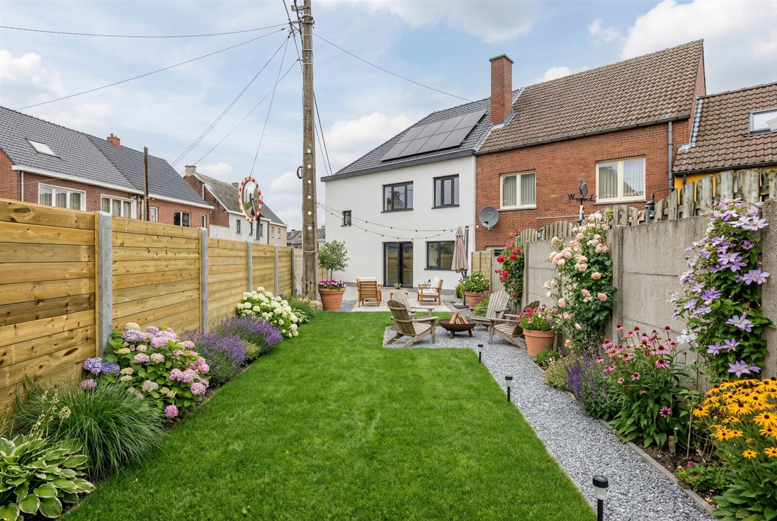Buiten onthult een onderhoudsvriendelijke, omheinde tuin met